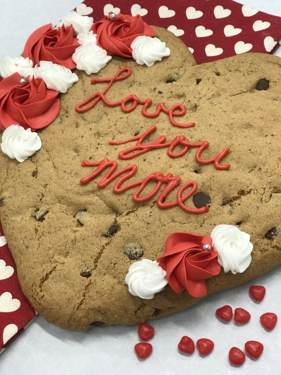 Flour Mix (Tapioca Starch, Millet Flour, Coconut Flour, Corn Starch), Brown Sugar, Water, Vegan Margarine, Chocolate Chips (unsweetened chocolate, sugar, cocoa butter, soy lethacin, natural vanilla flavour), Water, Flax Meal, Salt, Baking Soda, Vanilla Extract, Xanthan Gum. Icing (Palm Shortening, Icing Sugar, Organic Soy Milk, Vanilla, Salt, Red Food Colouring).